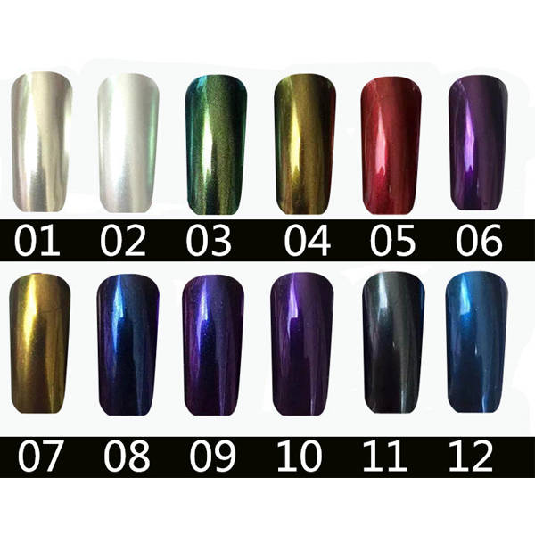 Features: 12 colors Magic Mirror Chrome Effect Powder Sliver, golden, mixed color mirror effect, you could choose anyone of 12 that you want. With this powder, you will change a normal nail into a magic mirror chrome effect. Just enjoy this Magic & Funny powder! Description: Item Type: Mirror Chrome Effect Powder Color: 01, 02, 03, 04, 05, 06, 07, 08, 09,10, 11, 12 (Choose the one you like) Powder Weight: App 5g (1 bottle) Quantity: 1 bottle We also have 12 Colors Magic Mirror Chrome Effect Metallic Powder Set, please feel excelent to have a look: Package Included: 1 X bottle Mirror Chrome Effect Powder Usage: Step1. Clean the nails and trim the nail surface as normal manicure process. Step2. Fully shake the bottle to mix the gel. Step3. Apply a thin layer primer, then cure with UV / LED Lamp. Step4. Apply 1 or 2 layer of normal black color UV Gel ( you can also try other base colors), cured with UV / LED lamp. Step5. Apply a thin layer topcoat, cure with UV / LED Lamp. Step6. Clean the oil of nails with a cotton pad. Step7. Apply the Magic Powder with a sponge pen to brush nails. ( you could apply less amount of powder with more times to achieve a best Mirror Chrome effect you want.) Step8. Use a nail brush to clean away the extra powder on your nails. Step9. Apply a thin layer topcoat, cure with UV / LED Lamp. (Recommend to apply 2 times to get a more smooth nail surface.) To save more powder, you could use this Dual-head Silicone Nail Pento apply the magic powder, please feel excelent to have a look: Note: 1. The real color of the item may be slightly different from the pictures shown on website caused by many factors such as brightness of your monitor and light brightness 2. Please allow slight deviation for the measurement data