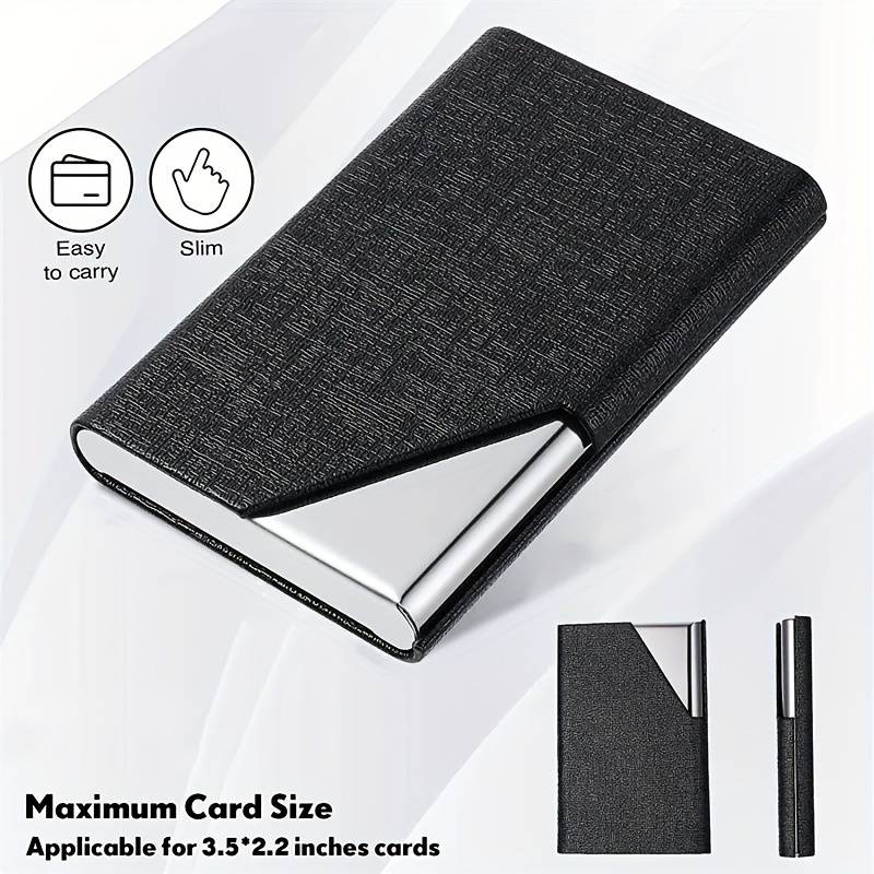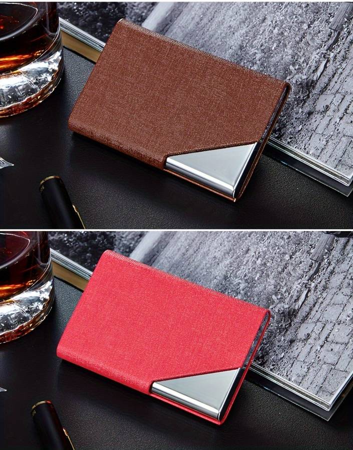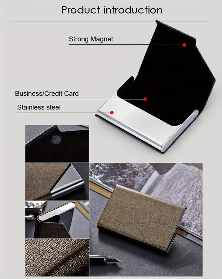 The business card holder is made from premium stainless steel and PU Leather with high quality, super durable.