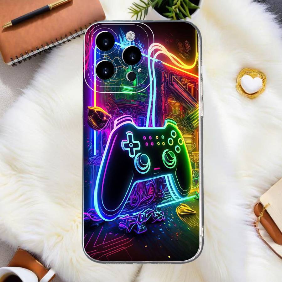 1Pc Mixed Color For iPhone 13 Mini Neon Light And Game Controller Phone Case