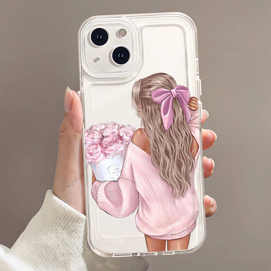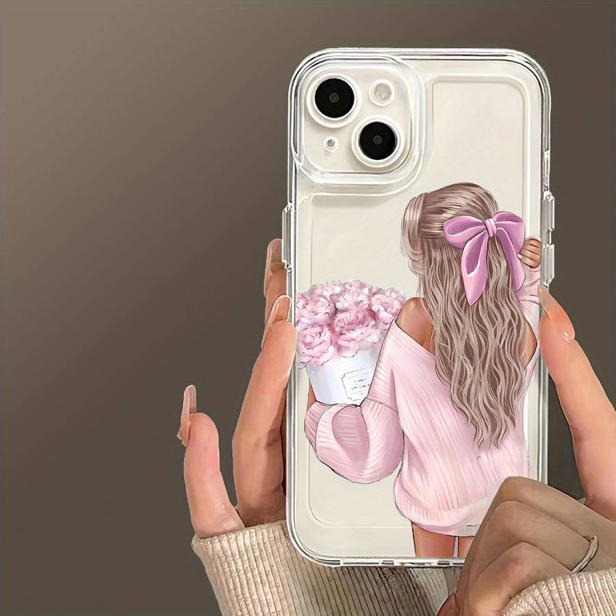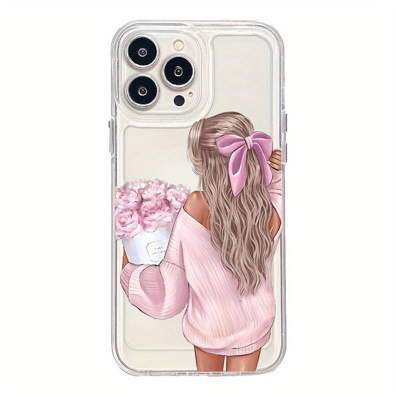 1Pc Mixed Color For iPhone 15 Pro Max Pink Beauty Pattern Phone Case