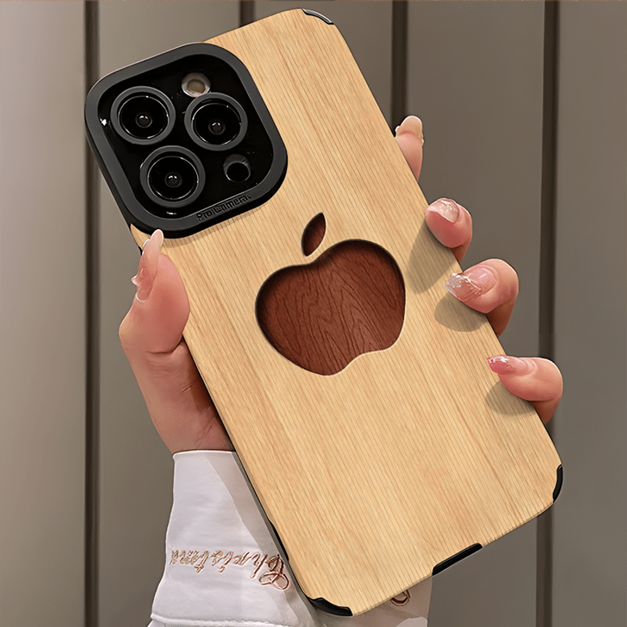 1Pc Mixed Color For iPhone 16e Apple Logo Wood Grain Phone Case
