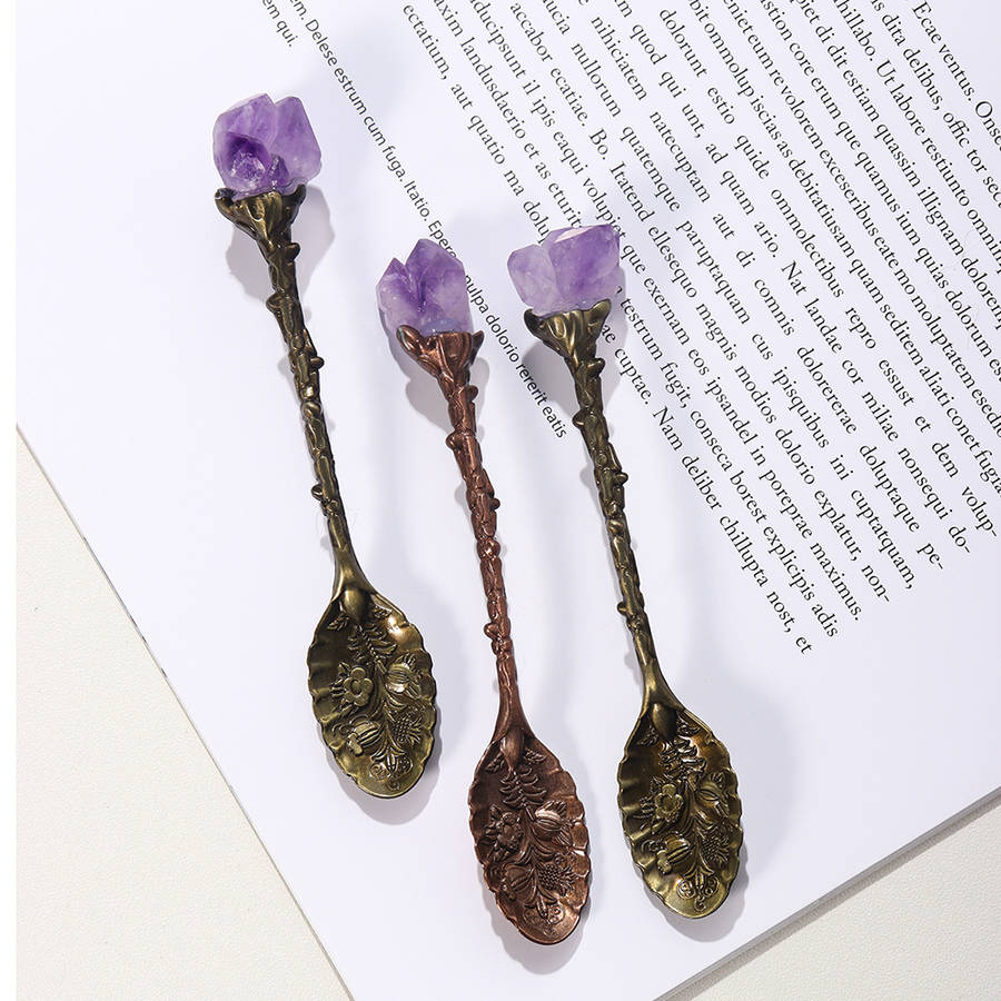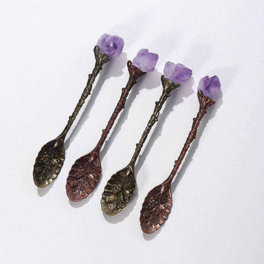 1pc Natural Amethyst Cluster Teaspoon Tooth Flower Gem Sweetmeats Spoon Decorate Gift Random Color Random style Handle Material:Stainless Steel Major Material:Natural stone Item ID:LL16262