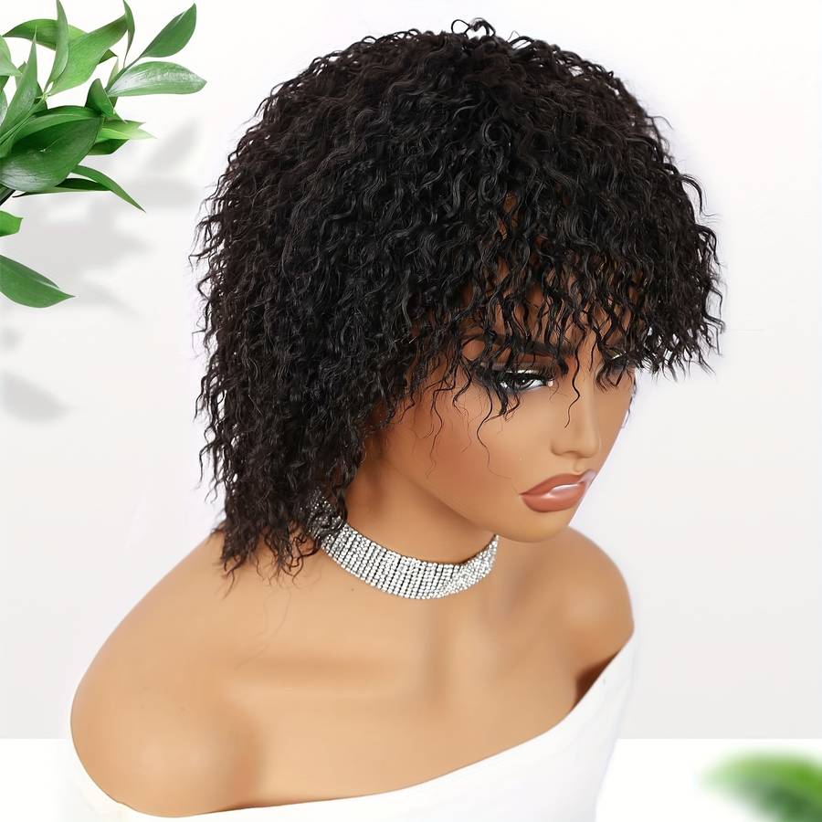 1Pc Black 30.48cm Fashion Design Wig Hair Material:High temperature fiber Cap Type:Buckle Net Gender:Women Curl:Kinky Curly Style:Sports Please note:There will be errors in manual measurement of size.The effects of different people will vary.If you mind please don't buy it.