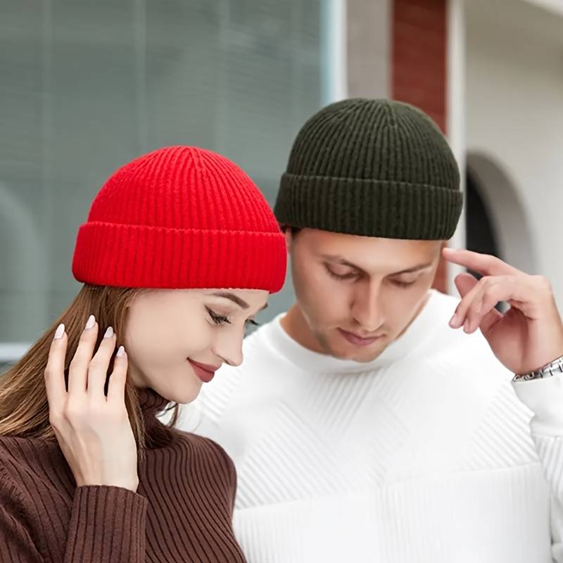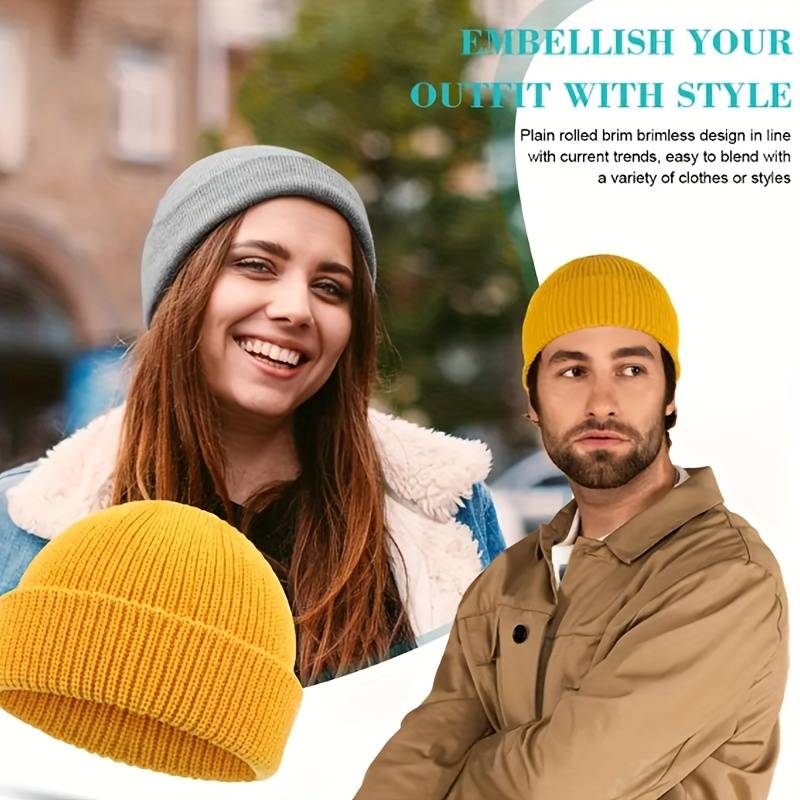 1pc Brimless Casual Style Fisherman Hat Short Ribbed Brimless Hat Lightweight Warm Winter Head