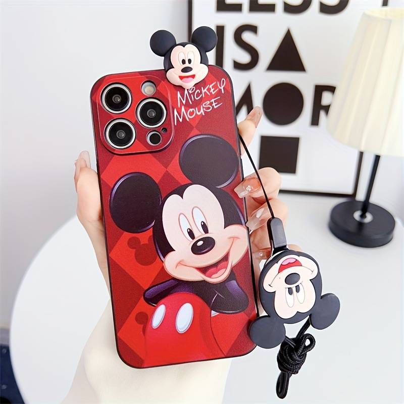 1Pc Red For iPhone 16 Pro Max Phone Case Popular Elements:Cartoon Feature:Lanyard,With Holder With Stand:Yes With Lens Protection:No Shell Processing:3D Printing imprinting technique:UV Printing Main Material:TPU