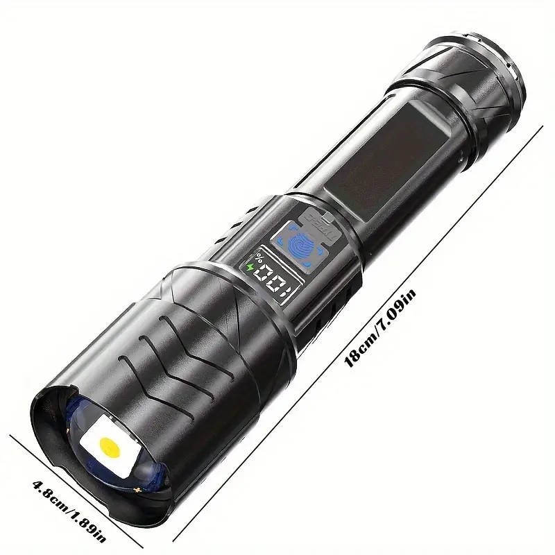 1pc Rechargeable LED Spotlight Flashlight with Digital Display Ultra High Beam Type-C Fast Charging Portable Outdoor Emergency Light Long Beam USB Charging 18650 Lithium Battery Plastic Shade