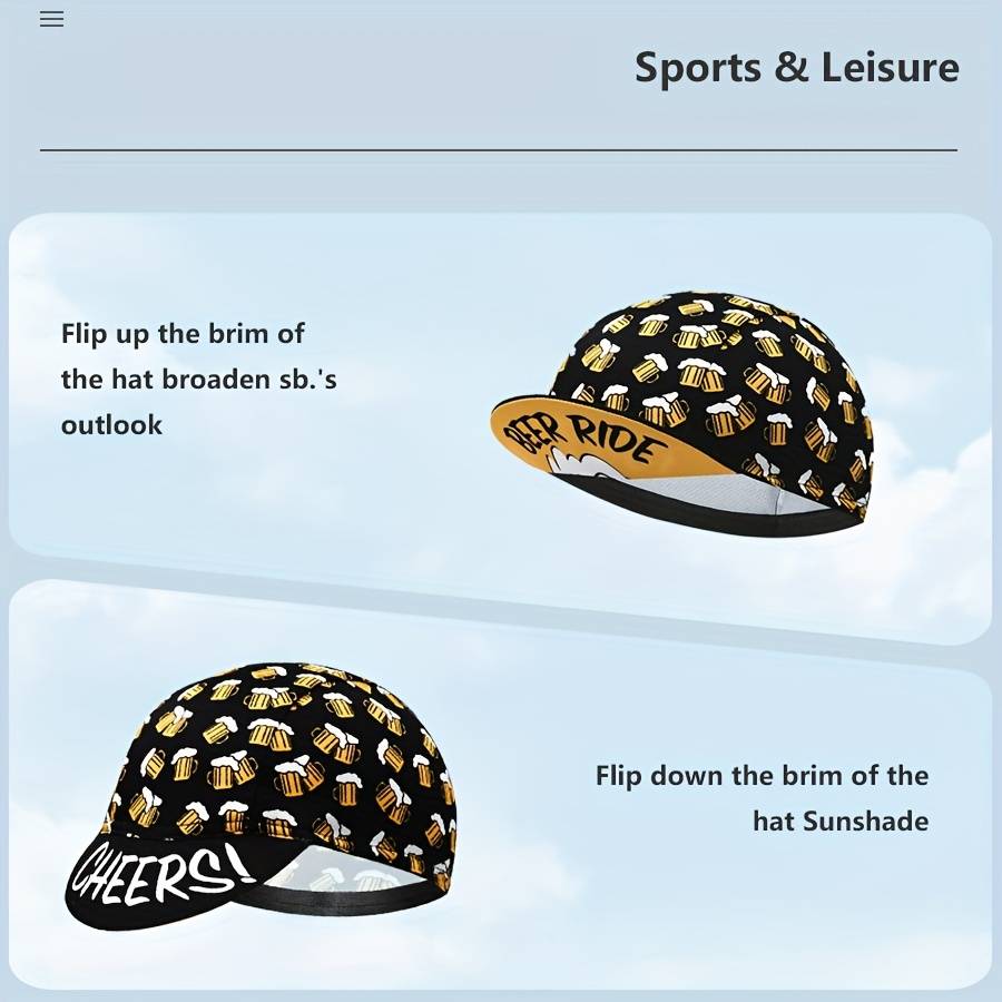1pc Retro Beer Cycling Cap Road MTB Bicycle Hat Outdoor Sports Cap Color sent randomly Operation Instruction:Hand wash,do not dry clean Weaving Method:Knit Fabric Type:Other Material Composition:Textile material content ᄀ80% Composition/Cover Composition:100% Polyester Color:Black Number Of Products:1 Item ID:JM353840
