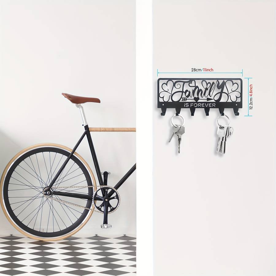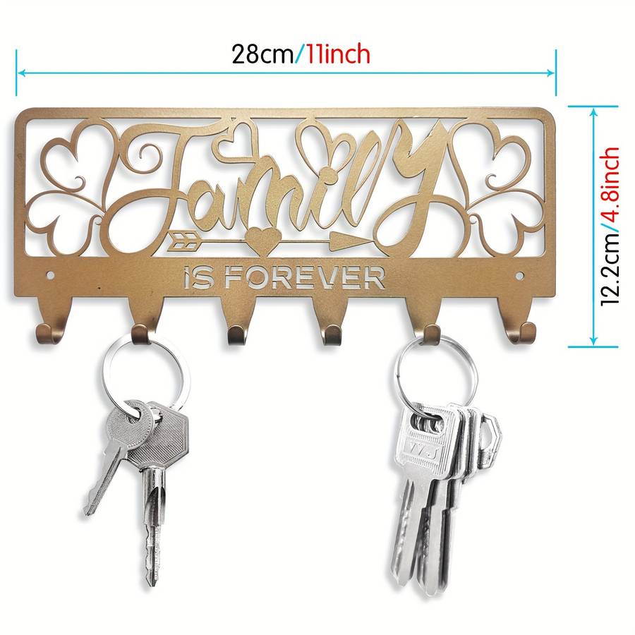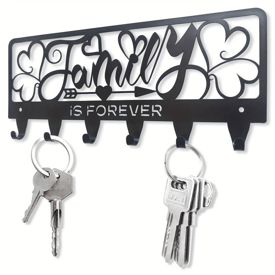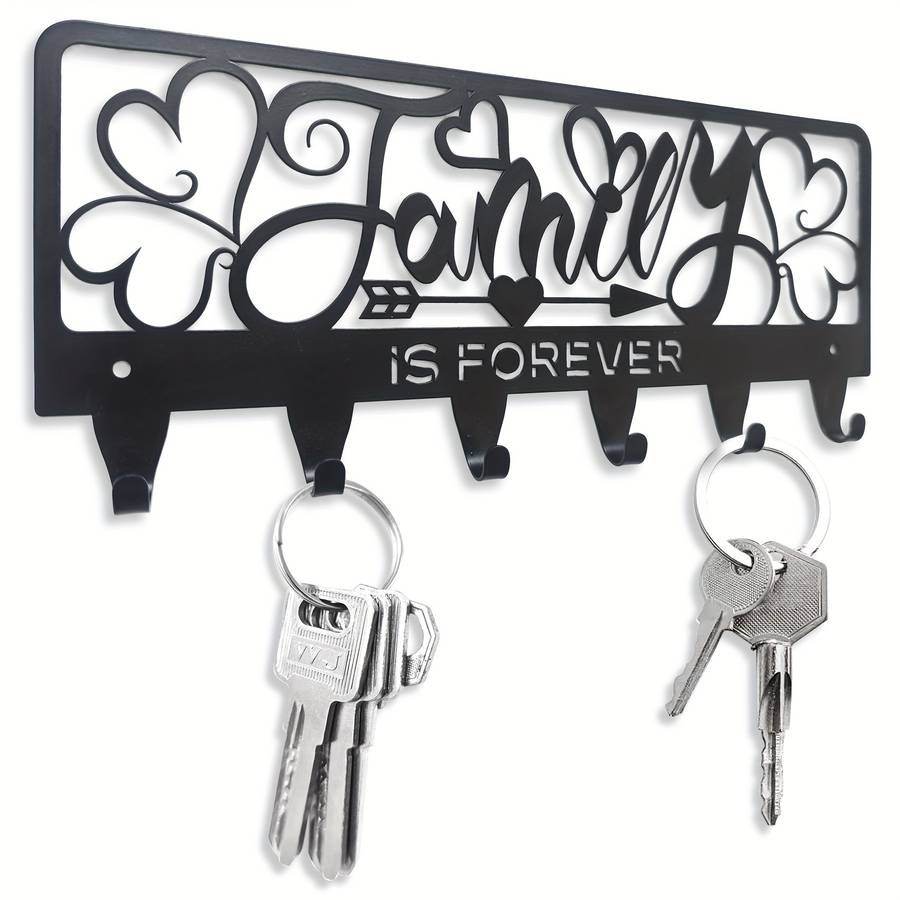 1pc Rustic Black Metal Key Holder with 'Family is Forever' Design - Wall Mounted Key Hooks Color sent randomly Material:Metal Style:Rustic Finish Type:Powder coated Special Features:Easy install Mounting Type:Wall mount Item ID:TC209430