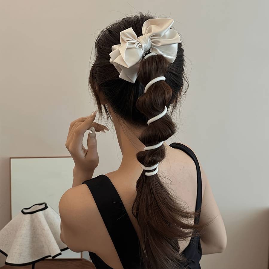 Elegant Bow Spiral Hairband - Fashionable Ponytail Hairband for Women and Girls, Solid Color, Perfect for New Year
