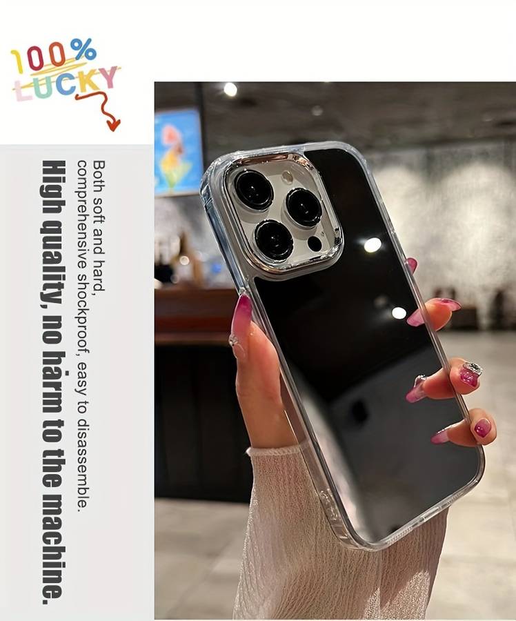 1Pc Silvery For iPhone 12 Pro Max Makeup Mirror Phone Case Popular Elements:Sequins Brand:VRNOEI With Stand:No With Lens Protection:No Main Material:TPU