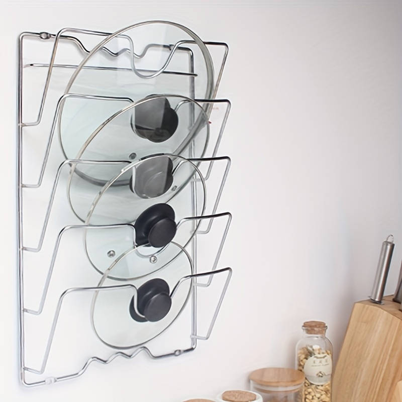 Multifunctional: This holder is not just for pot lids, it can also be used to store cutting boards and other kitchen accessories|.