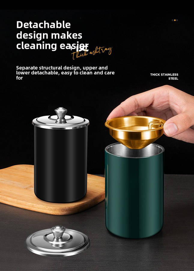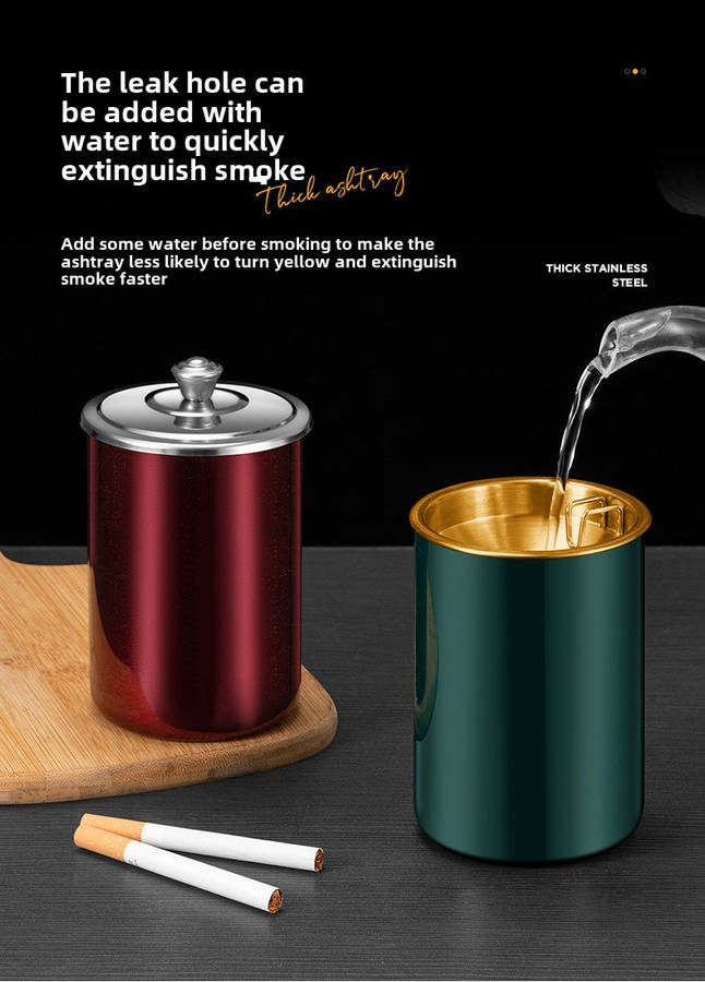 1pc Stainless Steel Home Living Room With Cover Ashtray Hotel Anti-fly Ash, Drop-proof And Windproo Color sent randomly Material:Stainless Steel Item ID:KN586465