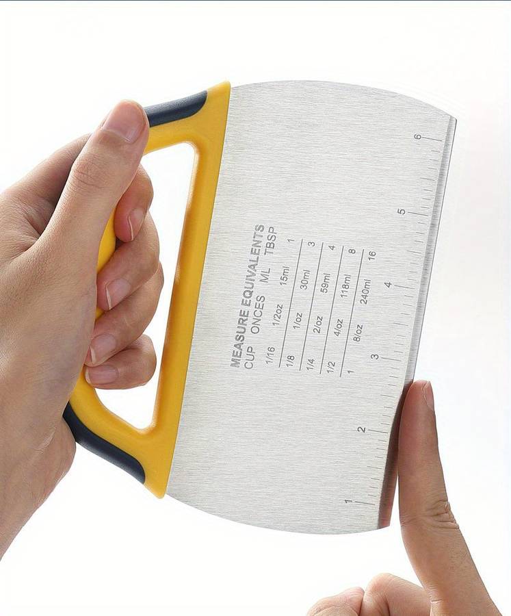 1pc Stainless Steel Slicing Knife with Measuring Scale - Durable, Non-Slip Silicone Handle, Per Random Color Material:Stainless Steel Item ID:XJ1479215