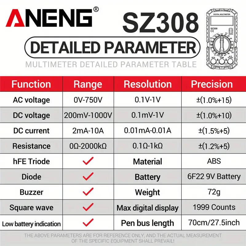 1pc SZ308 High-Precision Digital Multimeter Electrical Maintenance AC-DC Tester Multifunctional Voltage And Current Resistance Testing Tool Without Battery Color sent randomly