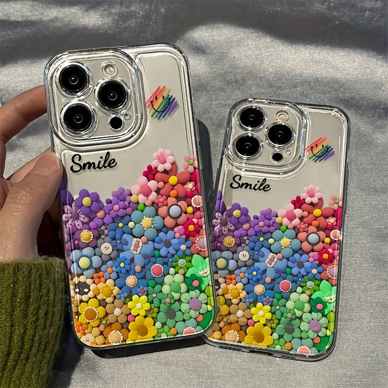1Pc Transparent For iPhone 12 Phone Case Popular Elements:Flowers