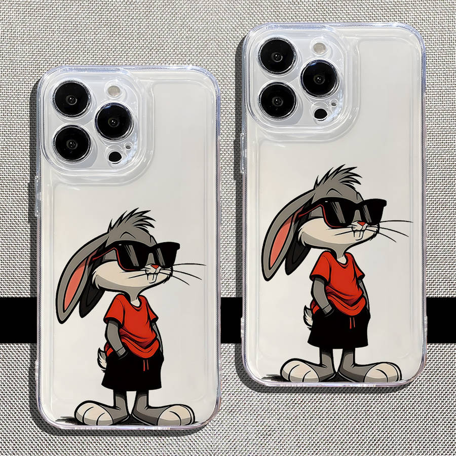 1Pc Transparent For iPhone 14 Pro Max Rabbit With Glasses Phone Case