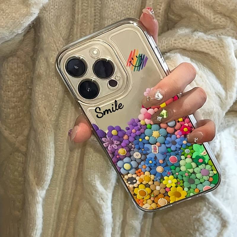 1Pc Transparent For iPhone 15 Phone Case Popular Elements:Flowers