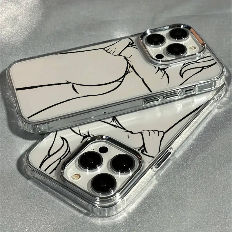 1Pc Transparent For iPhone 16 Pro Max Curved Buttocks Line Phone Case Popular Elements:Cartoon Feature:Air Cushion With Stand:No With Lens Protection:No Main Material:TPU