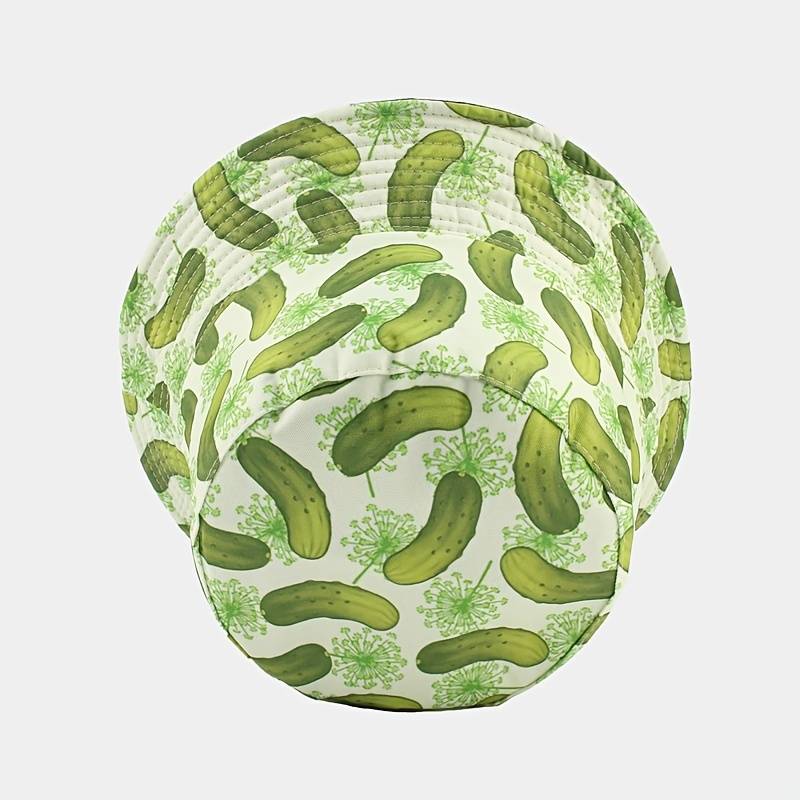 1pc Summer 2023 New Arrival Reversible Bucket Hat with Vibrant Cucumber Print Double-Sided Fishe