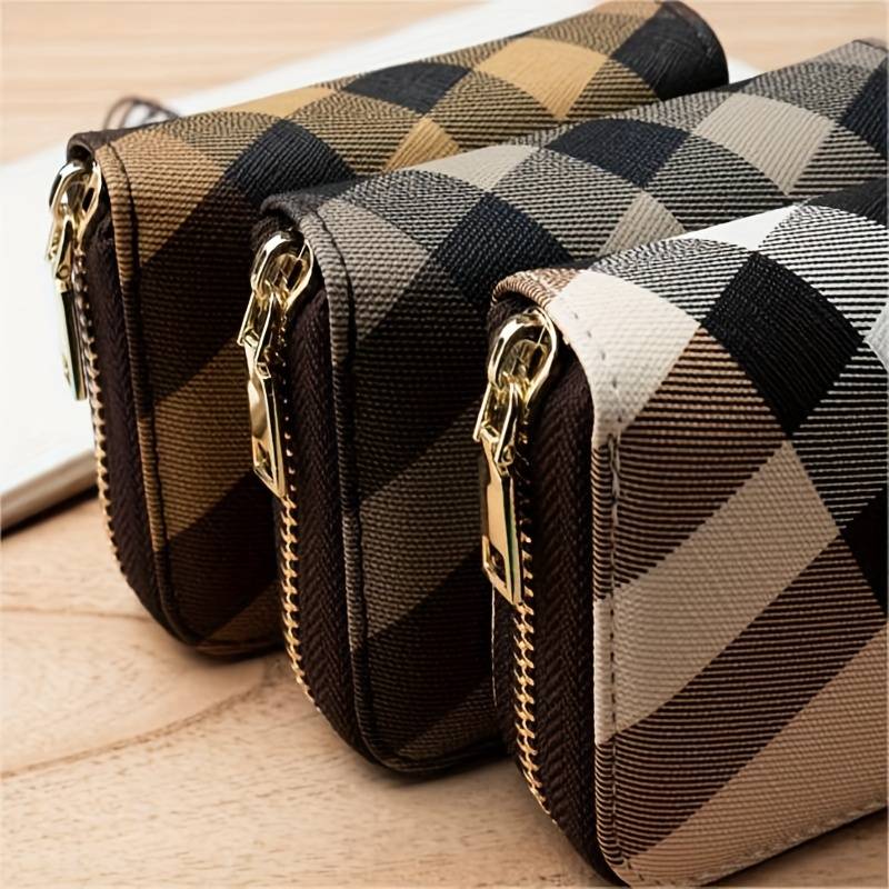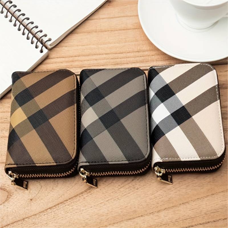 1pc Vintage Plaid Zipper Coin Purse Credit Card Holder for Women Compact Synthetic Leather Walle
