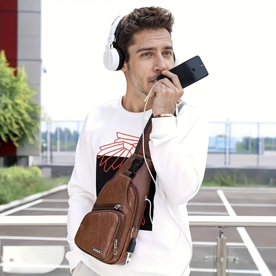 1pc Vintage Style Faux Leather Crossbody Bag Adjustable Shoulder Strap Anti-theft Zipper Closure Casual Travel Chest Bag with Multiple Compartments and Pockets for Easy Organization of Items