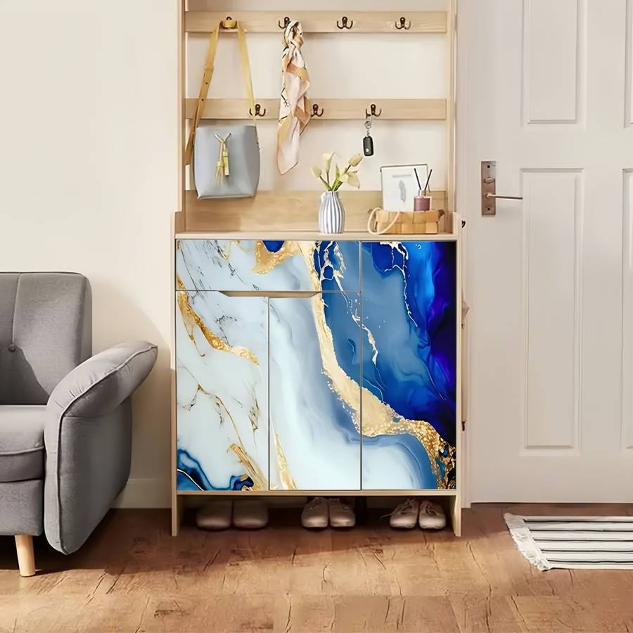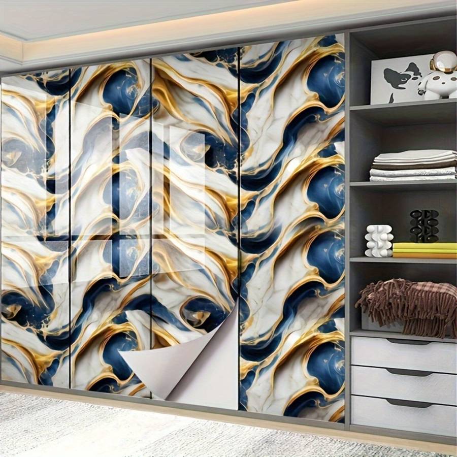 1PC Wall StickersDark Blue Golden40cmX300cm It is normal for there to be slight errors in the size due to manual cutting, and it is normal for there to be color differences due to different shooting angles. Please do not take pictures if you mind. Style:Landscapes Material:Vinyl Installation Method:Self-Adhesive Pattern Match:Random Match