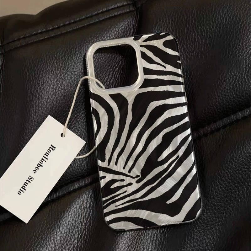 1Pc White For iPhone 11 Pro Max Feather Black Zebra Pattern Phone Case