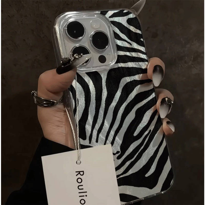 1Pc White For iPhone 13 Pro Max Feather Black Zebra Pattern Phone Case