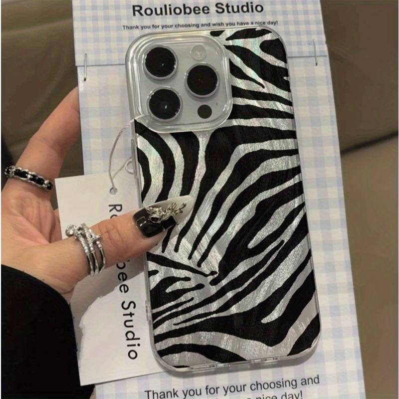 1Pc White For iPhone 14 Pro Max Feather Black Zebra Pattern Phone Case