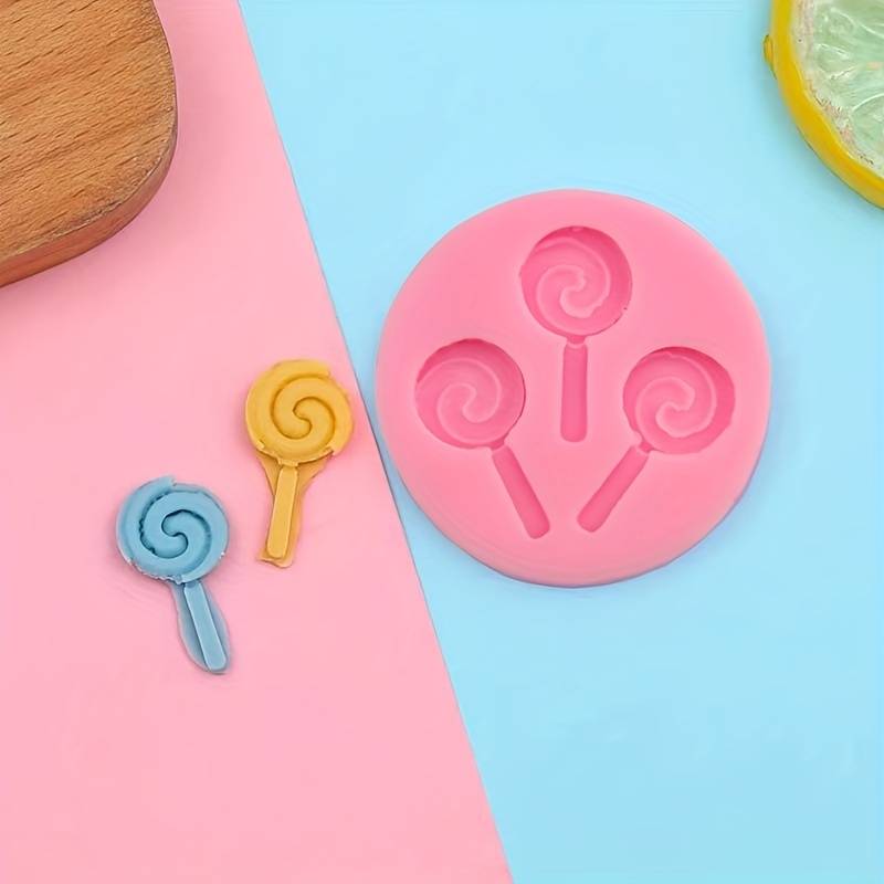 1pc, Lollipop Shape Chocolate Mold, 3 Cavity 3D Silicone Mold, Candy Mold, Fondant Mold, For DIY Cake Decorating Tool, Baking Tools, Kitchen Gadgets, Kitchen Accessories, Home Kitchen Items