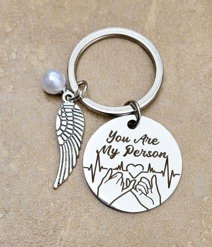 1pcs Stainless Steel / You Are My Person / Keychain / Tibetan Style Pendant & Glass Pearl