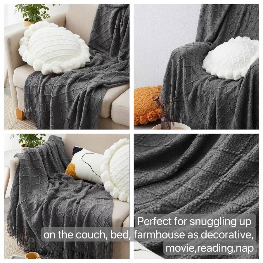 Made of 100% high quality acrylic, very soft touch, cozy warm sofa throw, strong anti-sunlight and excellent fastness, The decorative pattern of one side matches the decoration of the room more, measures 50 x 60(Not include tassels)