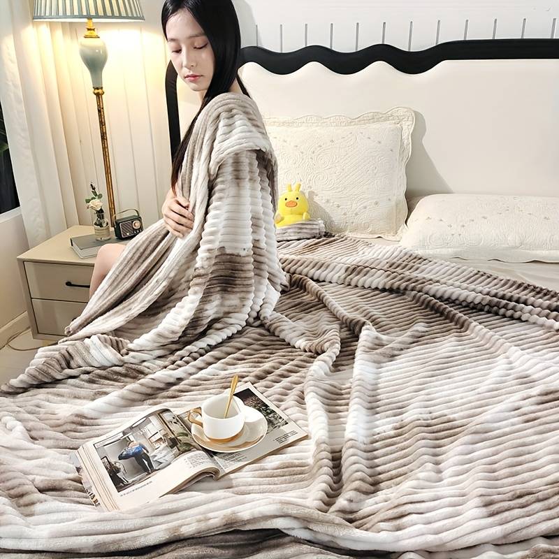 1ps Blanket Color Brown Striped size 120cmx200cm It is normal that there will be some color errors due to different shooting angles Operation Instruction:Machine wash All-season:All Seasons Theme:Other Topics Pattern:Stripes Style:Contemporary Recommended Usage:Multipurpose Cover Material:100% Polyester Weaving Method:Knit Fabric Printing Type:No Printing Fabric Type:Flannel Craftsmanship:Tie-dyeing Fabric Square Weight:200-250 g/ᄅO Color:Mixed Color