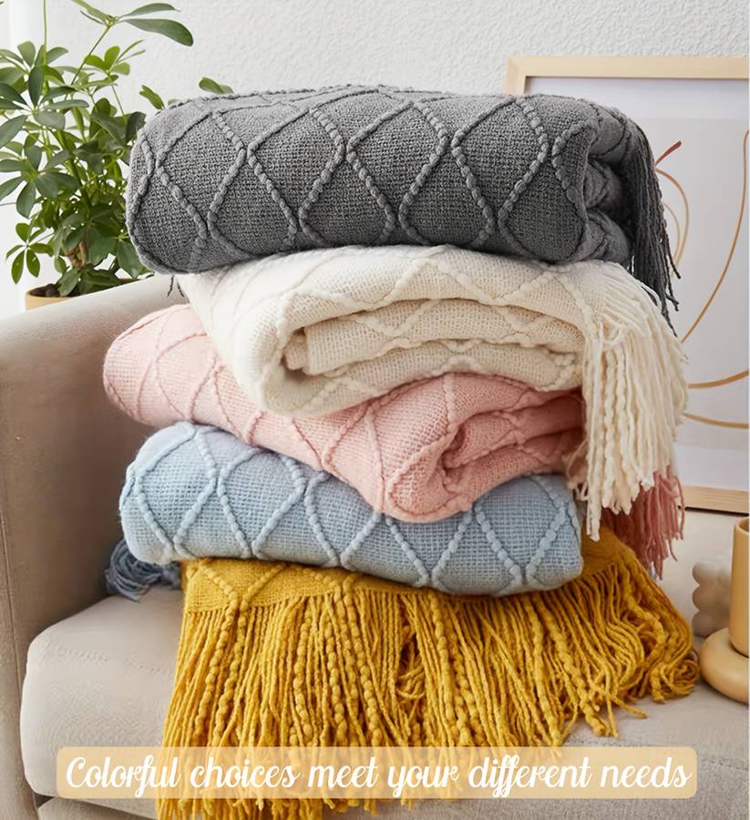 Made of 100% high quality acrylic, very soft touch, cozy warm sofa throw, strong anti-sunlight and excellent fastness, The decorative pattern of one side matches the decoration of the room more, measures 50 x 60(Not include tassels)