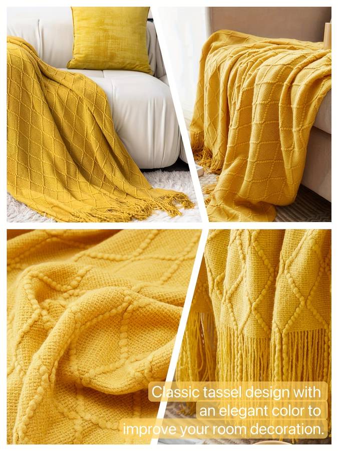 Made of 100% high quality acrylic, very soft touch, cozy warm sofa throw, strong anti-sunlight and excellent fastness, The decorative pattern of one side matches the decoration of the room more, measures 50 x 60(Not include tassels)