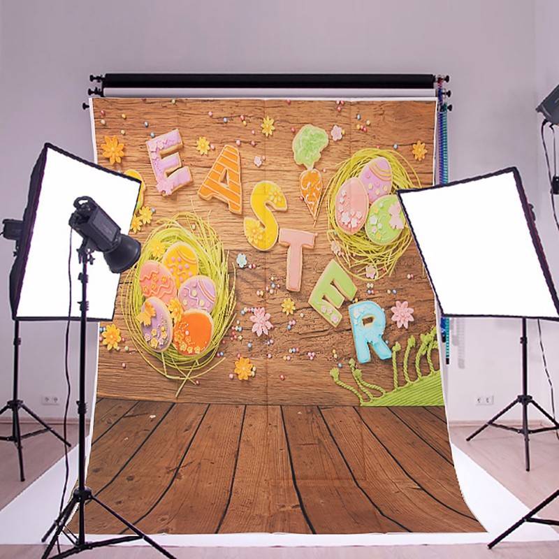 1x1.5m 3x5ft Easter Egg Wall Wooden Floor Vinyl Studio Photography Backdrop Background