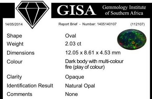 THIS OPAL COMES WITH FULL GISA CERTIFICATION