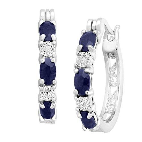 A never-fail style gets the special treatment with a smattering of radiant gemstones! Trios of oval-cut natural sapphires totaling 2 1/10 ct are joined with diamond accents in a set of hoop earrings crafted in platinum over brass. Pieces measure 7/8 inches in diameter.SAPPHIRE HOOPS: Trios of deep blue sapphires alternate with a bezel-set diamond NATURAL OVAL-CUT SAPPHIRES & ROUND-CUT DIAMONDS: Hoops feature oval-cut natural sapphires totaling 2 1/10 carats and 1 diamond accent each PLATINUM OVER BRASS: A platinum plating ensures exceptional shine and long-lasting resistance to tarnish SEPTEMBER BIRTHSTONE: A piece of sapphire jewelry is the perfect gift for loved ones with a September birthday and is often called the choice jewel for kings and queens Hoops measure 7/8 inches in diameter and feature hinge with notched post backs