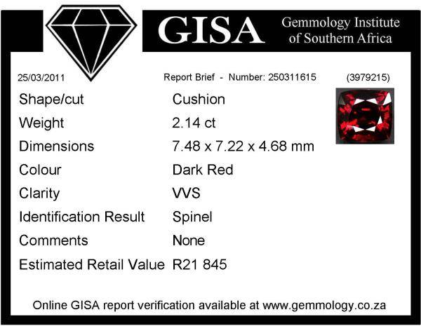 Spinel's over 2 carats are very rare and this is an exceptional piece to add to any collection.