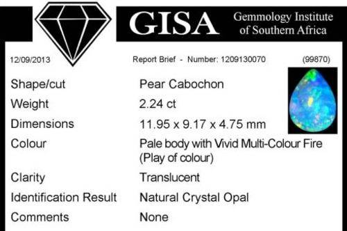 BUY WITH PEACE OF MIND. THIS OPAL COMES WITH FULL G.I.S.A. CERTIFICATION