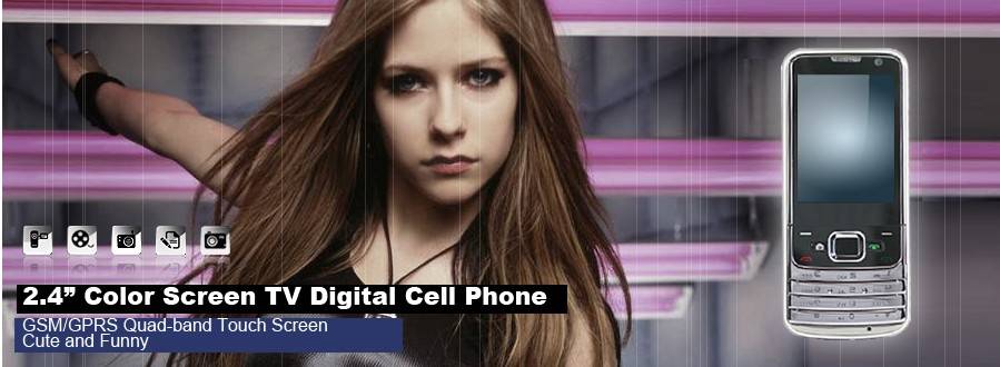 2.4" TV Touch Screen Slim Quad-Band Dual SIM Cell Phone. HD Camera,