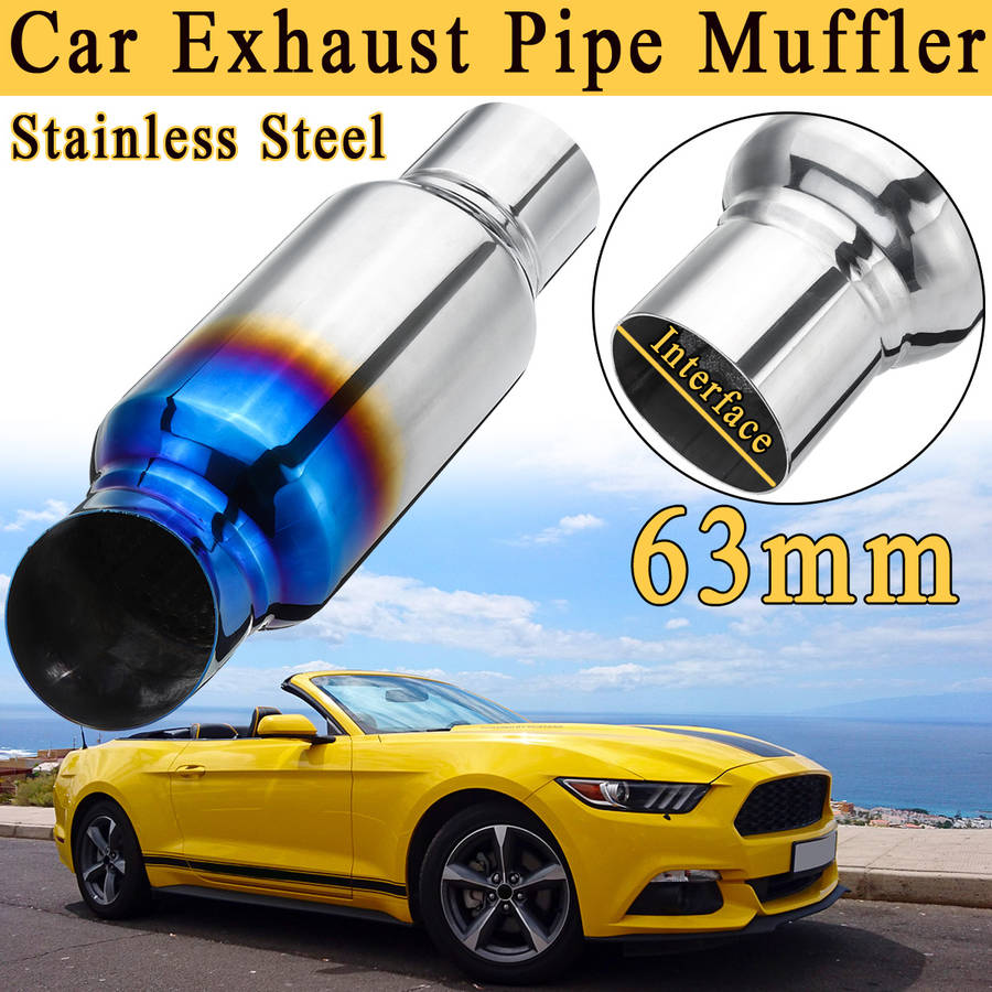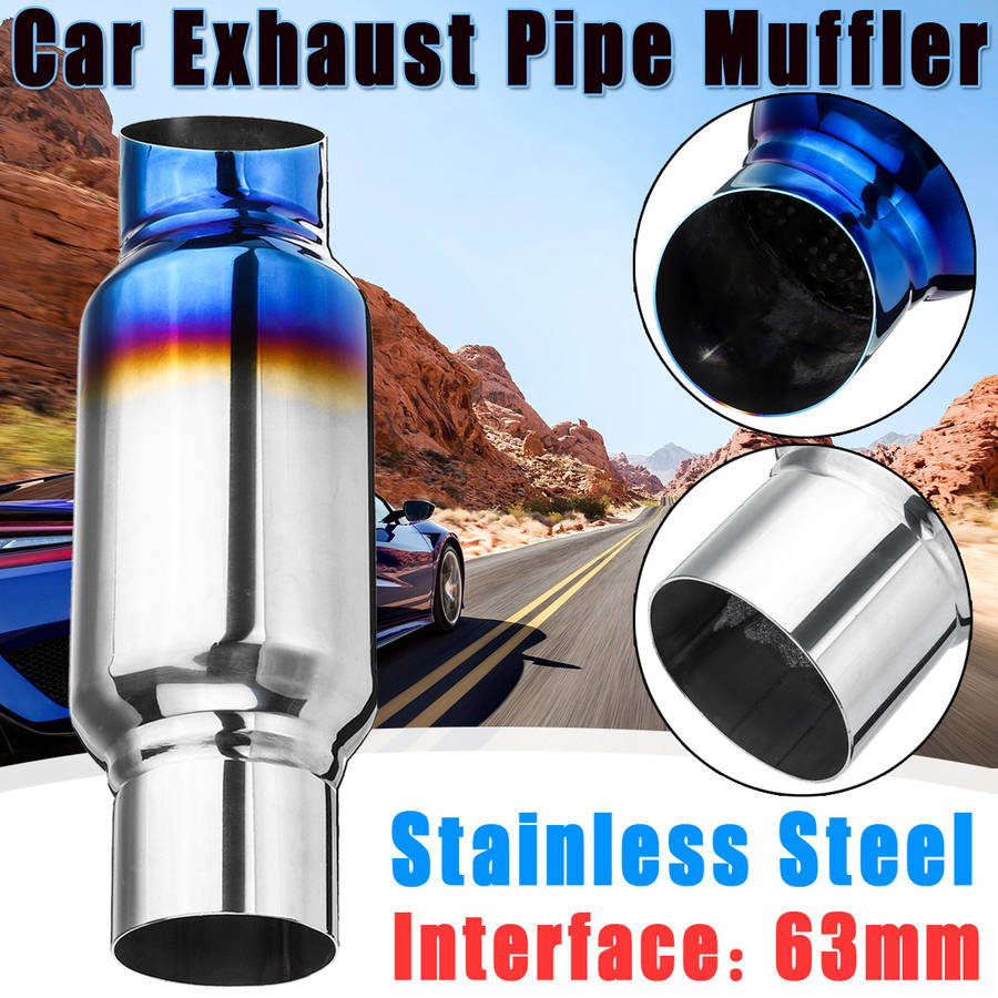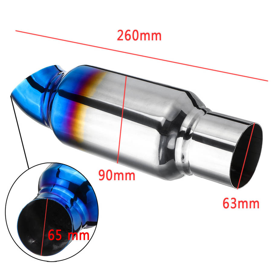 Specification: -Length: 260mm -Interface size: 63mm -Drum diameter: 90mm -Material: Stainless Steel -Type: Car Exhaust Muffler -Color: Grill Blue and Silver -Placement on Vehicle: Rear -Other Size: As the picture shows Features: -Great durability and shiny looks, totally new. -Easy installation -Rare Decorating Parts and keep your car unique and eye-catching. Fitment:Universal Note: Please make sure this item will fit your vehicle before you purchase. Package Included: 1 X Car Exhaust Muffler