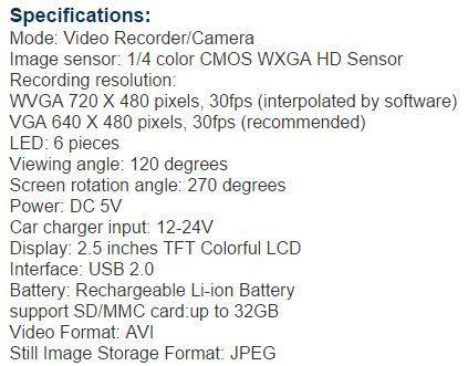 2.5" DVR Dashcam
