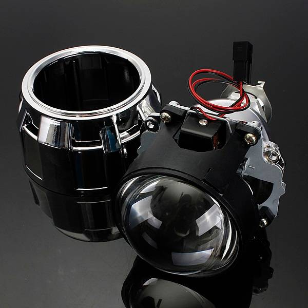 2.5 Inch Motor Bi-xenon HID Projector Angle Eye Halo Lens Headlight Specification: Color: Chrome Size: Like the picture show 2.5" Clear Lens Elegant appearance Inner Bowl is brand New No damage Bulb's Type: H1 After plates' type: H4/ H7 Fitment: Fits for RHD Note: No instruction in the box ,professional installation is strongly recommended This item don't include bulb and ballast Package Included: 1 X Mini Bi-xenon Projector Lens (Low/High Beams) 1 X Shrouds 1 X Sets of installation Accessories