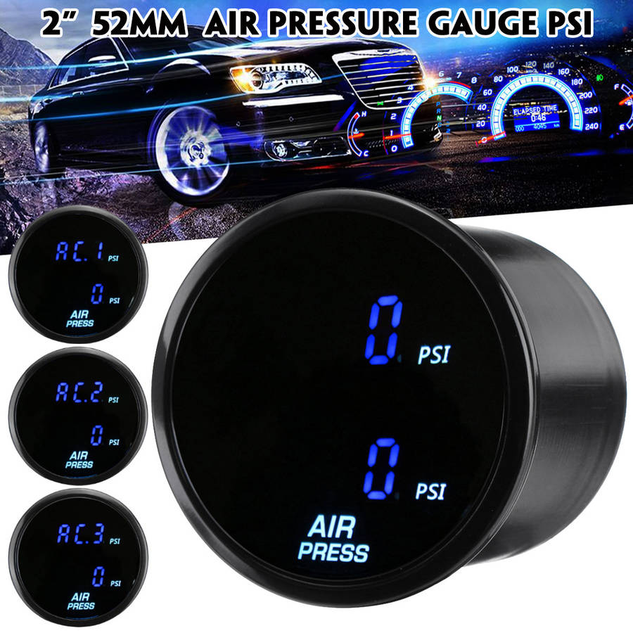-52mm dual air pressure gauge with blue LED readings of pressure,rapid and accurate response, easy to read.