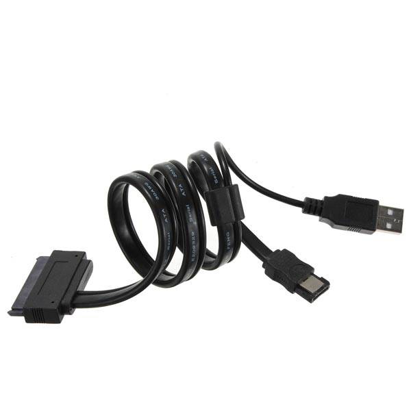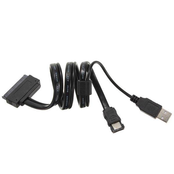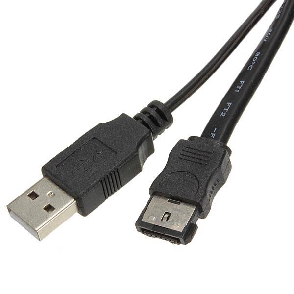 Description: USB A Male + eSATA male to SATA 22pin HDD 2.5 inch Driver. This cable works mostly with 2.5 Inch HDD, because your laptop or PC mostly offers 5V power. The USB+eSATA male plug in your PC at the same time, it can reach the speed of power esata. Cable length : 50cm If you use it with your 3.5 or 5.5 inch HDD, then please make sure that your USB devices offer 12V Power Package Included: 1 x SATA to eSATA + USB Cable