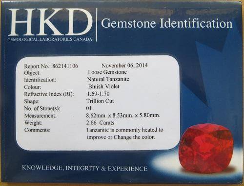 CERTIFIED 2.66CT TANZANITE TRILLION