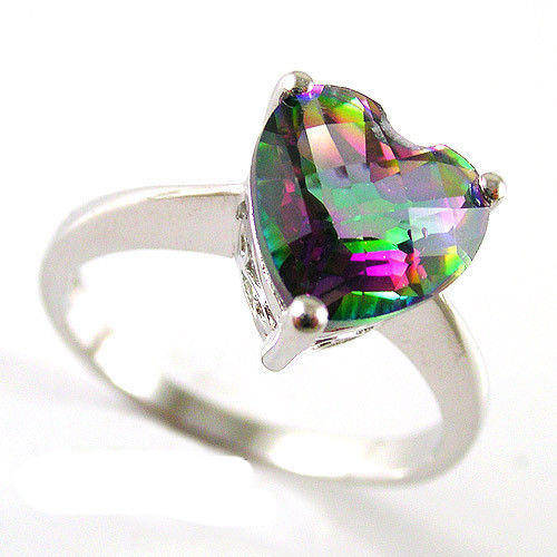 2.6ct GENUINE RAINBOW MYSTIC TOPAZ RING IN .925 SOLID STERLING SILVER