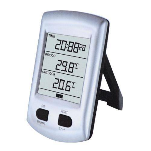 Item: 2.7" LCD Wireless Digital Indoor Outdoor Thermometer with Clock (2 x AA + 2 x AAA) Dimensions: 4.45 in x 2.68 in x 1.06 in (11.3 cm x 6.8 cm x 2.7 cm)Weight: 7.41 oz (210 g)