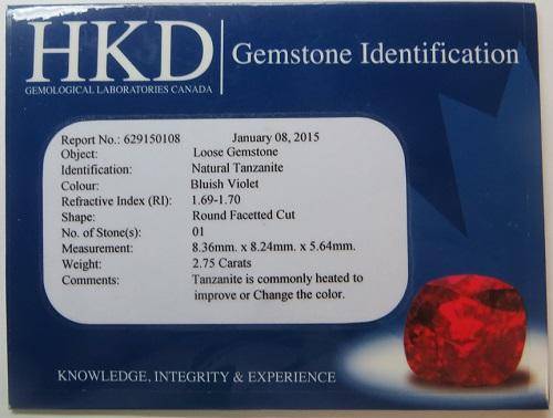 CERTIFIED 2.75CT TANZANITE ROUND